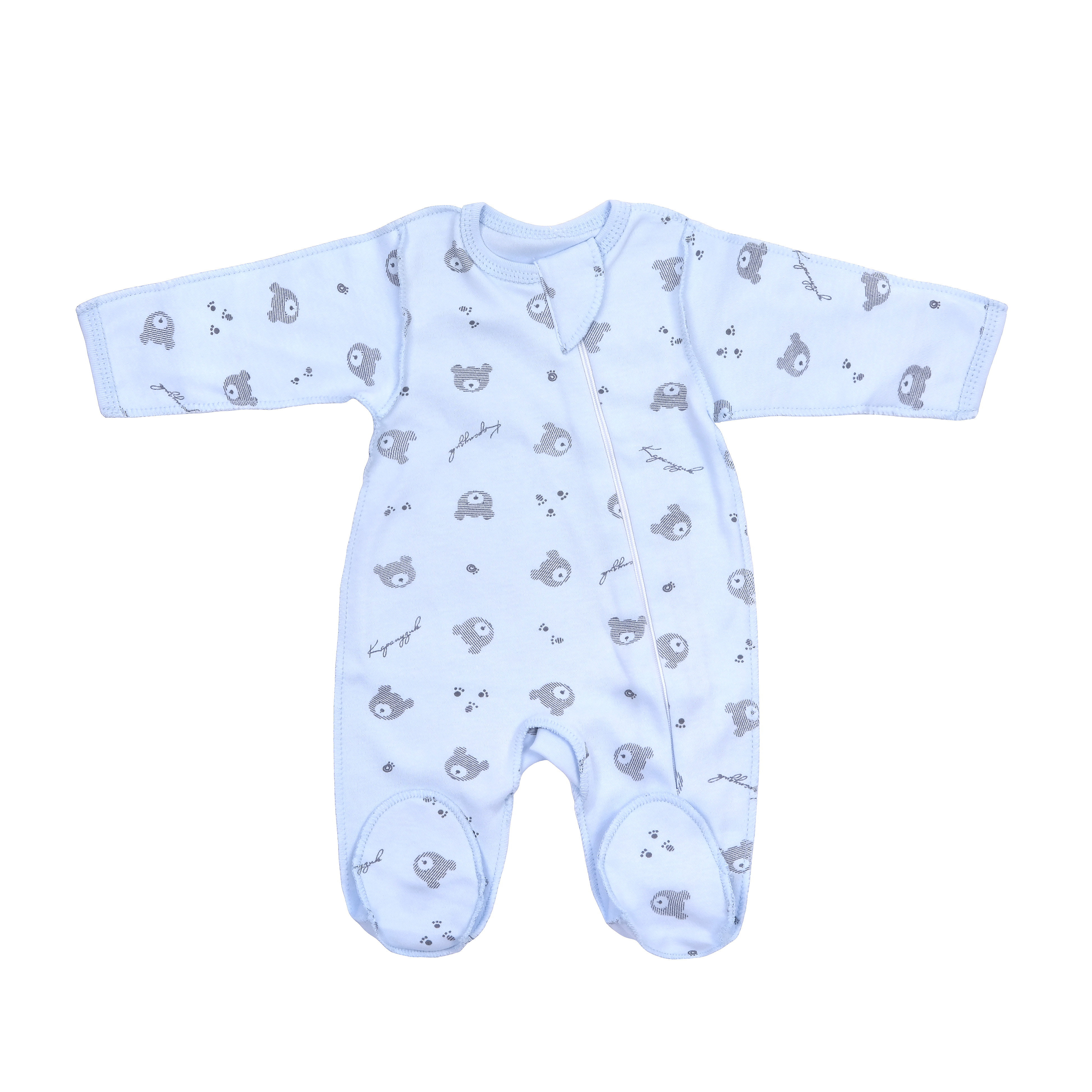 Очаровательный комбинезон для малышей с нежным голубым фоном и принтом в виде серых мишек и лапок. Изготовлен из мягкого натурального хлопка, он обеспечит максимальный комфорт и уют вашему малышу как дома, так и на прогулке.