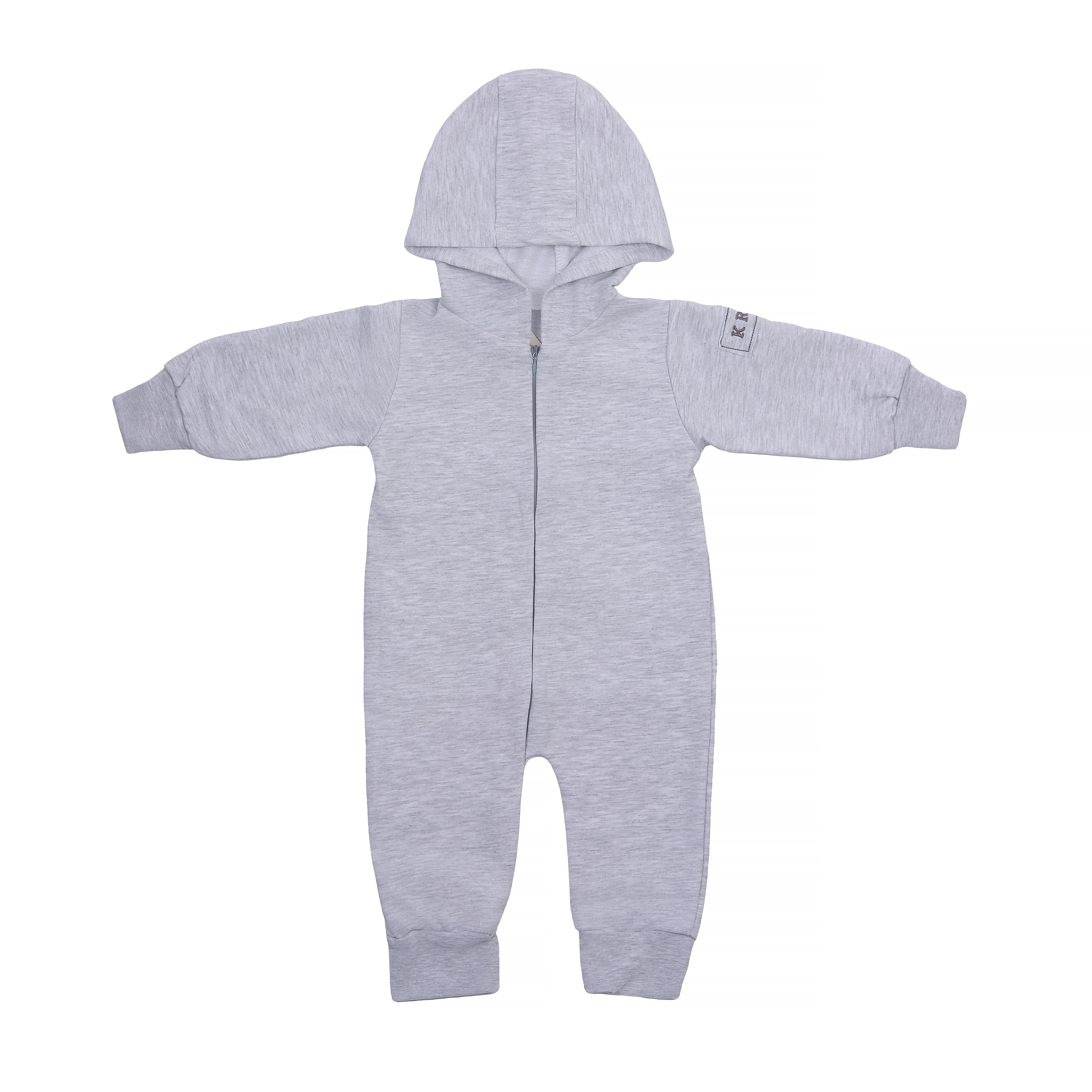Комбинезон серый на молнии с капюшоном