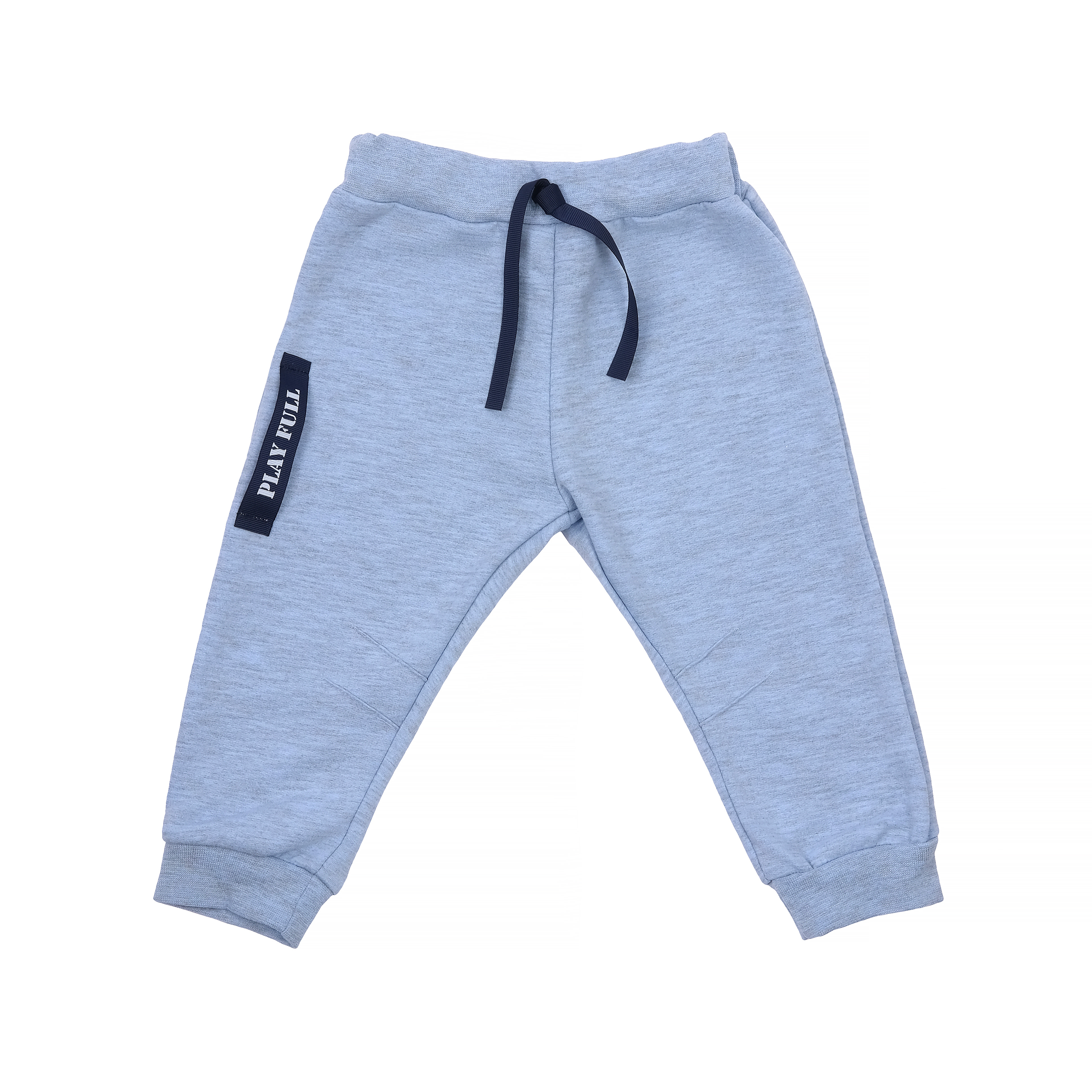 Детские брюки для мальчика — светло-голубые, с декоративной лентой