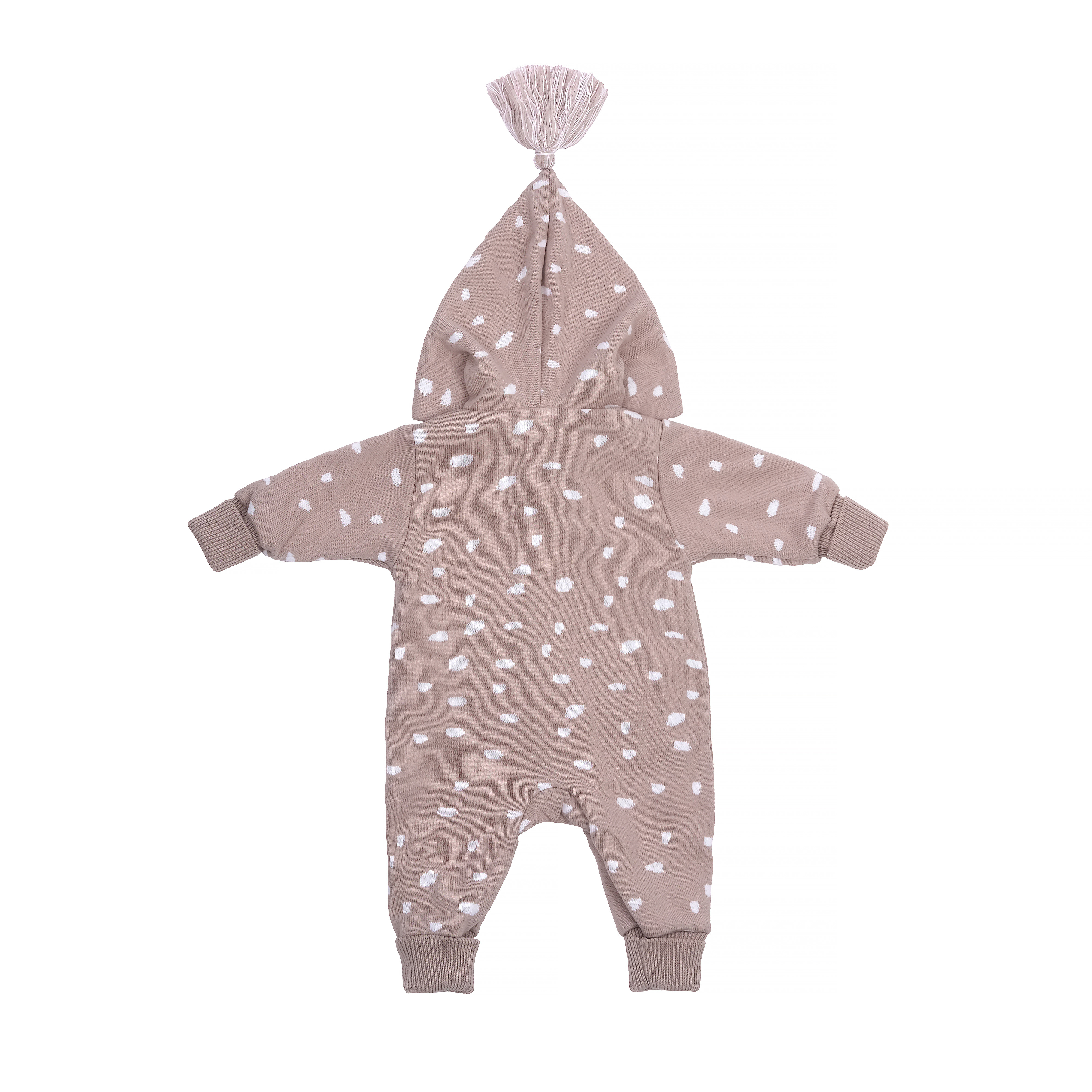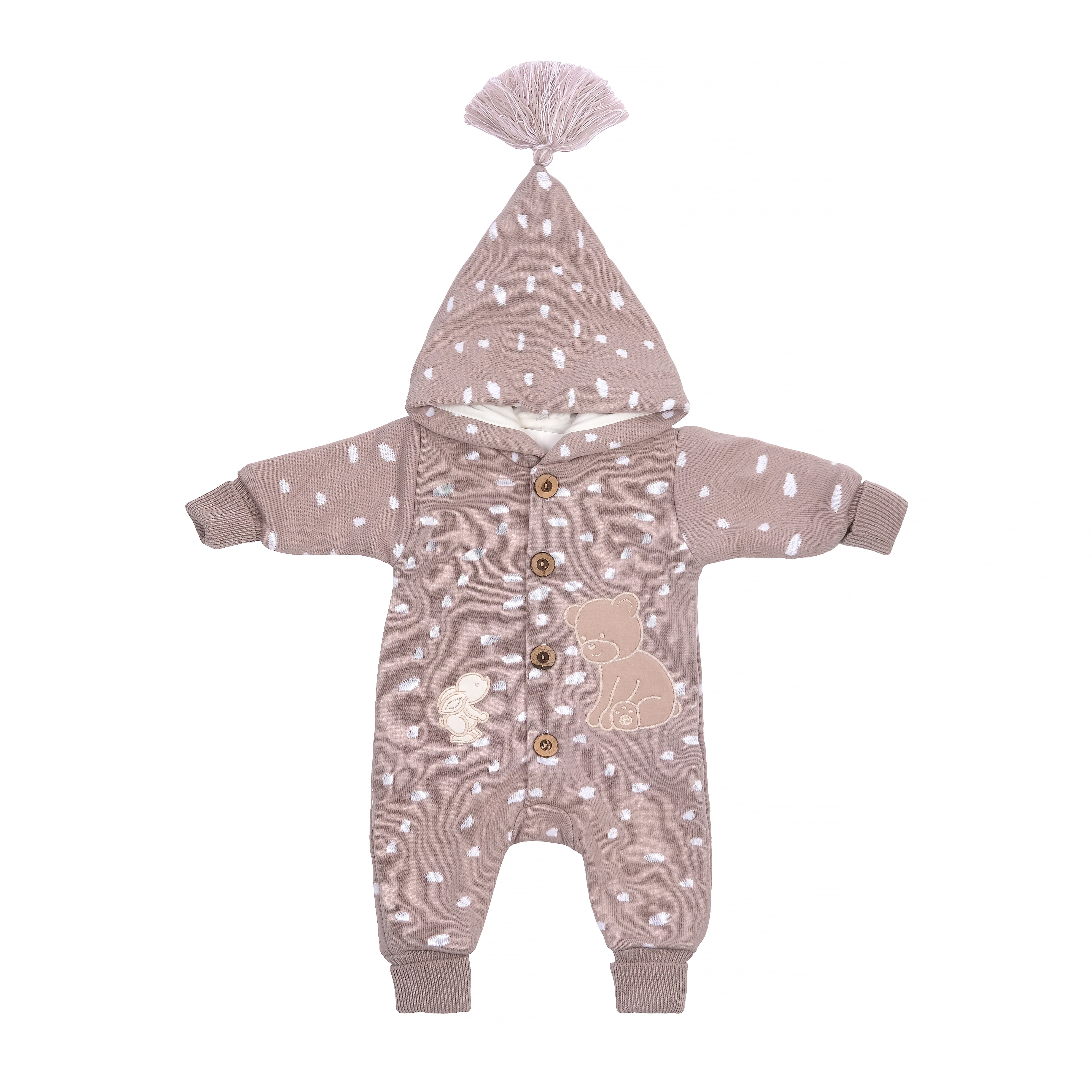 Вязаный комбинезон с капюшоном коричневый на пуговицах